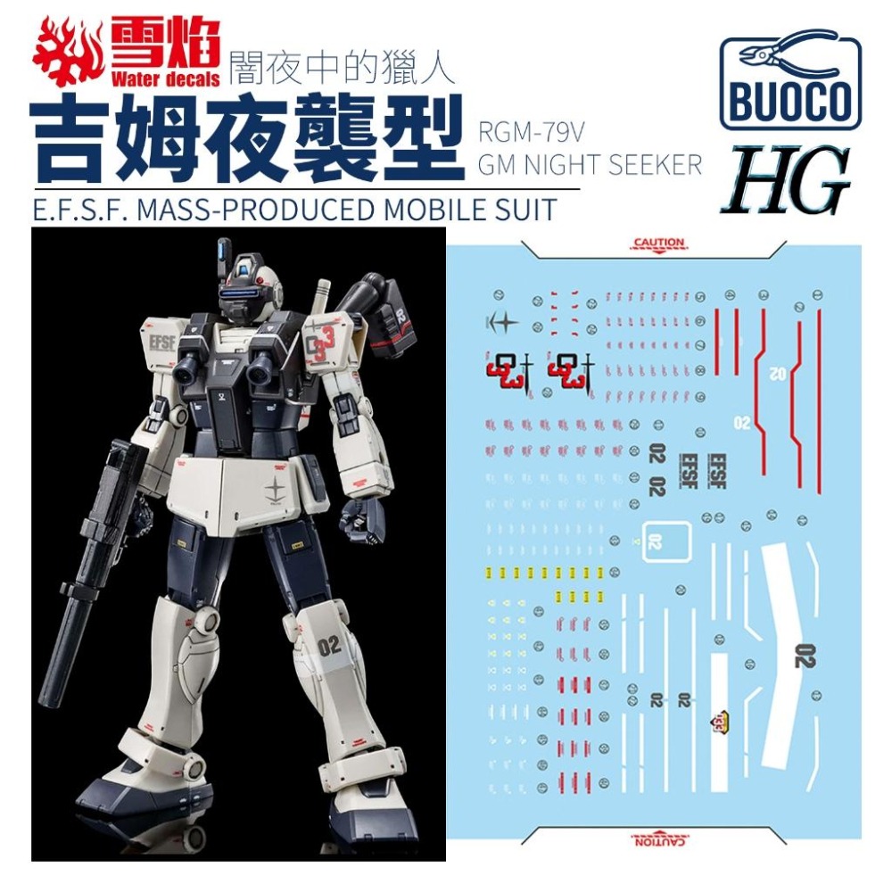 BUOCO, 雪焰, GTO, TheOrigin, MSD, GMNightSeeker, 吉姆夜襲型, RGM79V, NightSeekerII, 夜襲型II, YazanGable, HG, 螢光水貼, 模型