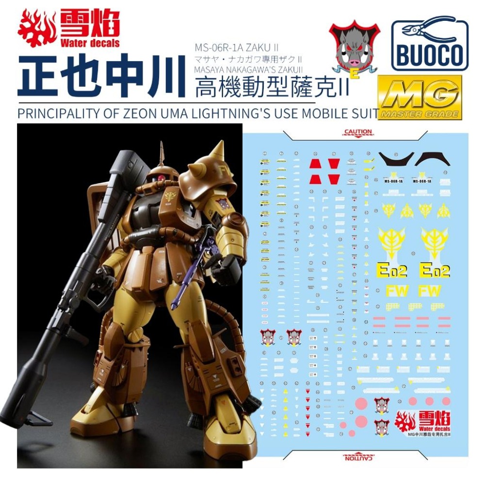 BUOCO, 雪焰, ZakuII, 高機動型薩克, 薩克, MS06R1A, 正也・中川, 中川雅哉, MasayaNakagawa, MSV, 吉翁, Zeon, 野豬徽章, 阿巴瓦空, 螢光水貼, MG, 水貼, 模型