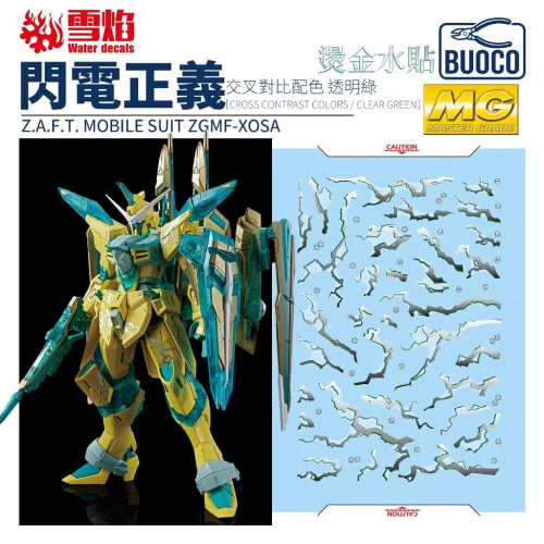 [BUOCO] 雪焰 MG-170 1/100 正義鋼彈 閃電正義 交叉對比配色 透明綠 電鍍 水貼