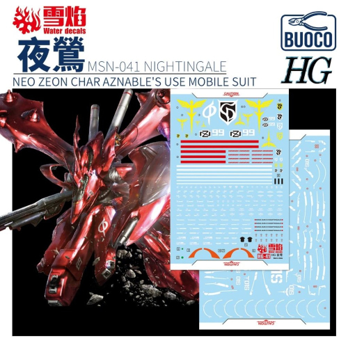 [BUOCO] 雪焰 HG-41 1/144 HGUC 夜鶯 Nightingale MSN-04II 夏亞總帥機 螢光 水貼