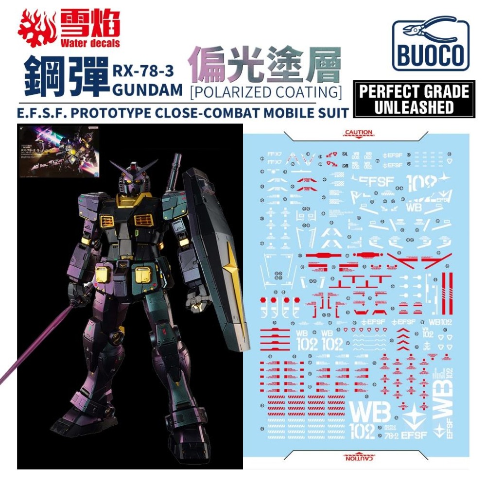 [BUOCO] 雪焰 PGU 1/60 RX-78-2 初鋼 鋼彈 中國限定 偏光塗層 專用對應 螢光 水貼
