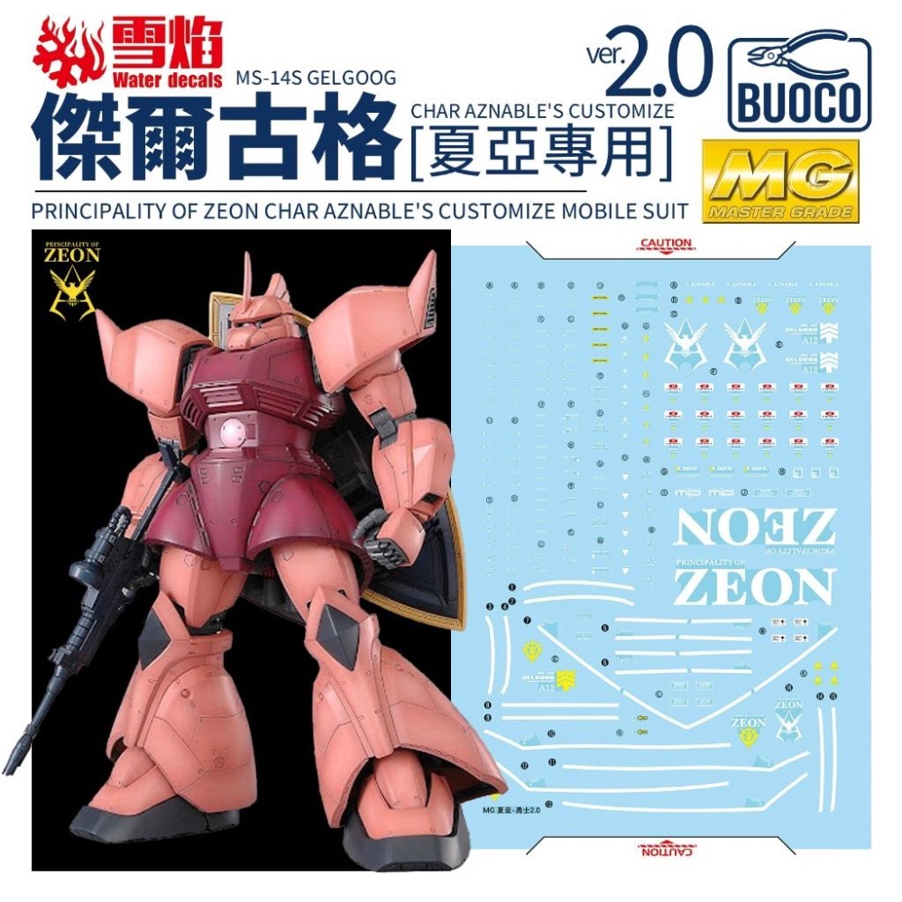 BUOCO, 雪焰, Gelgoog, 傑爾古格, MS14S, 夏亞專用, CharAznable, 紅色彗星, 吉翁, Zeon, 蓋古克, 豬鼻, 一年戰爭, 螢光水貼, MG, 水貼, 模型