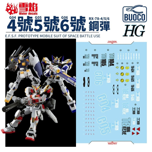 [BUOCO] 雪焰 HG-30 1/144 RX-78-4 5 6 號機 4號機 5號機 泥岩 鋼彈 G04 G05 G06 螢光 水貼