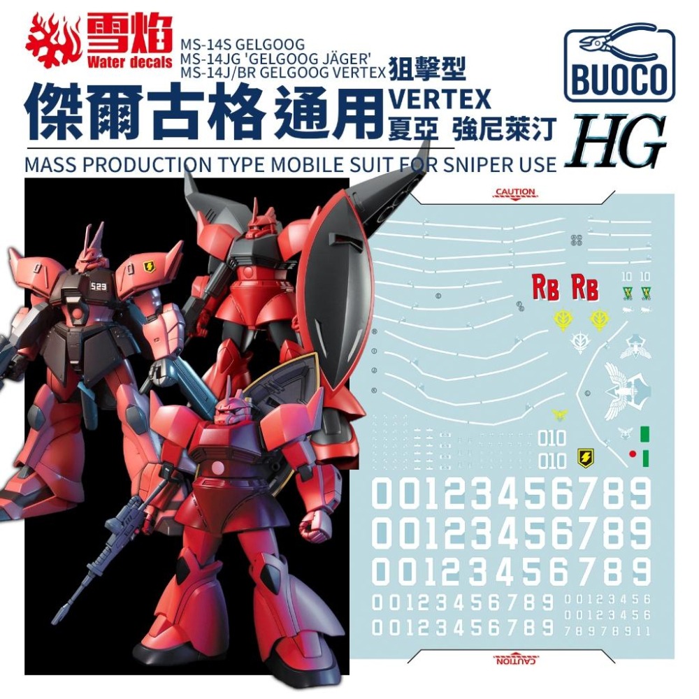 #BUOCO #雪焰 #鋼彈 #Gunpla #水貼 #VERTEX #J型 #狙擊型 #Gelgoog #傑爾古格 #猛士 #夏亞 #Zeon #吉翁 #強尼萊登 #強尼萊汀 #HG #螢光 #模型 #細節提升