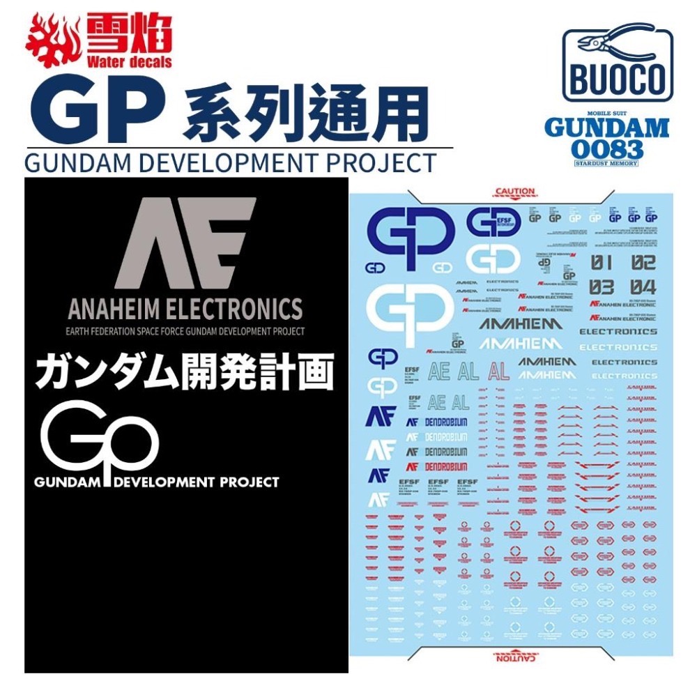 BUOCO, 雪焰, GP01, GP02, GP03, GP04, Dendrobium, Physalis, Zephyranthes, Gerbera, StardustMemory, 星塵回憶, 0083, Anaheim, 阿納海姆, AE, 鋼彈開發計畫, 螢光水貼, 鋼彈, 模型