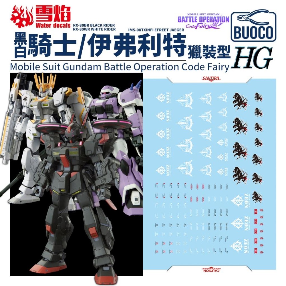 BUOCO, 雪焰, CodeFairy, 代號妖精, BlackRider, 黑騎士鋼彈, WhiteRider, 白騎士鋼彈, EfreetJaeger, 伊弗利特獵裝型, 激戰任務, BattleOperation, 黑犬小隊, BlackDog, PB限定, HG, 螢光水貼, 模型