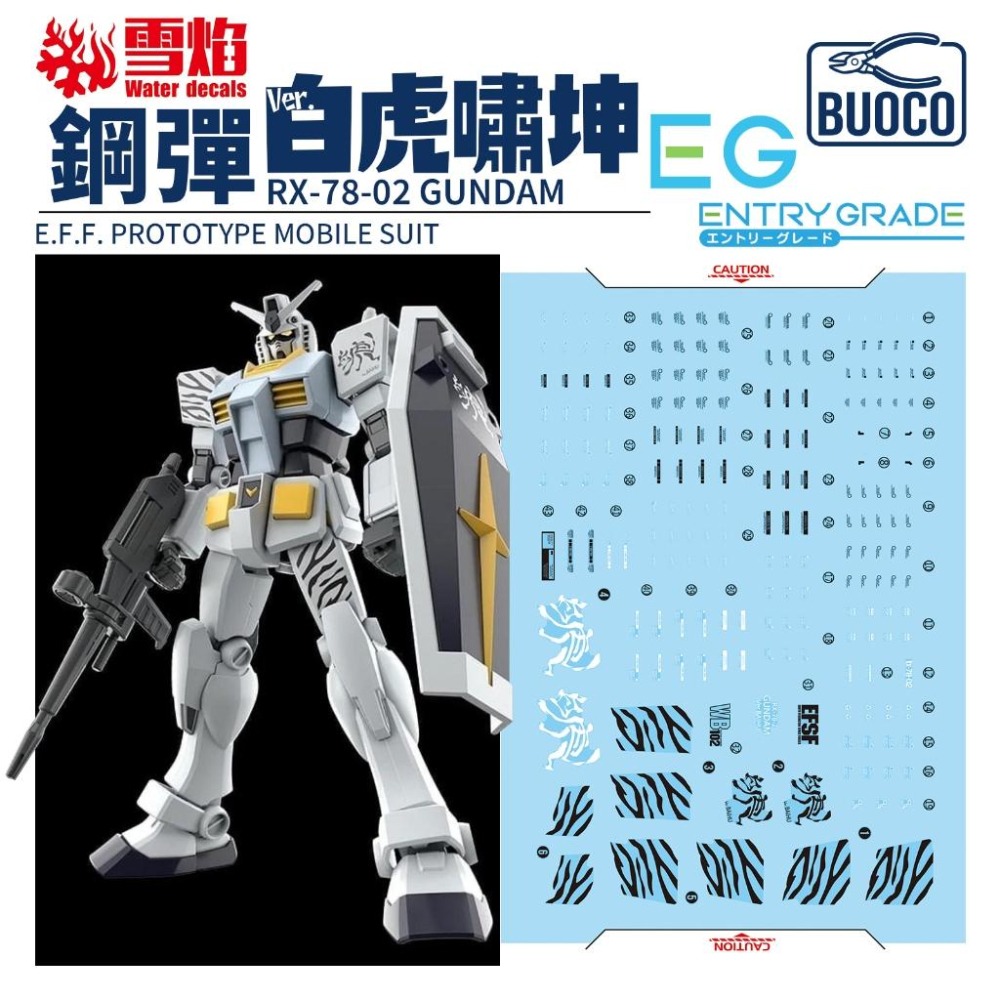 [BUOCO] 雪焰 EG 1/144 RX-78-2 初鋼 鋼彈 白虎嘯坤 虎紋 螢光 水貼 EG-01