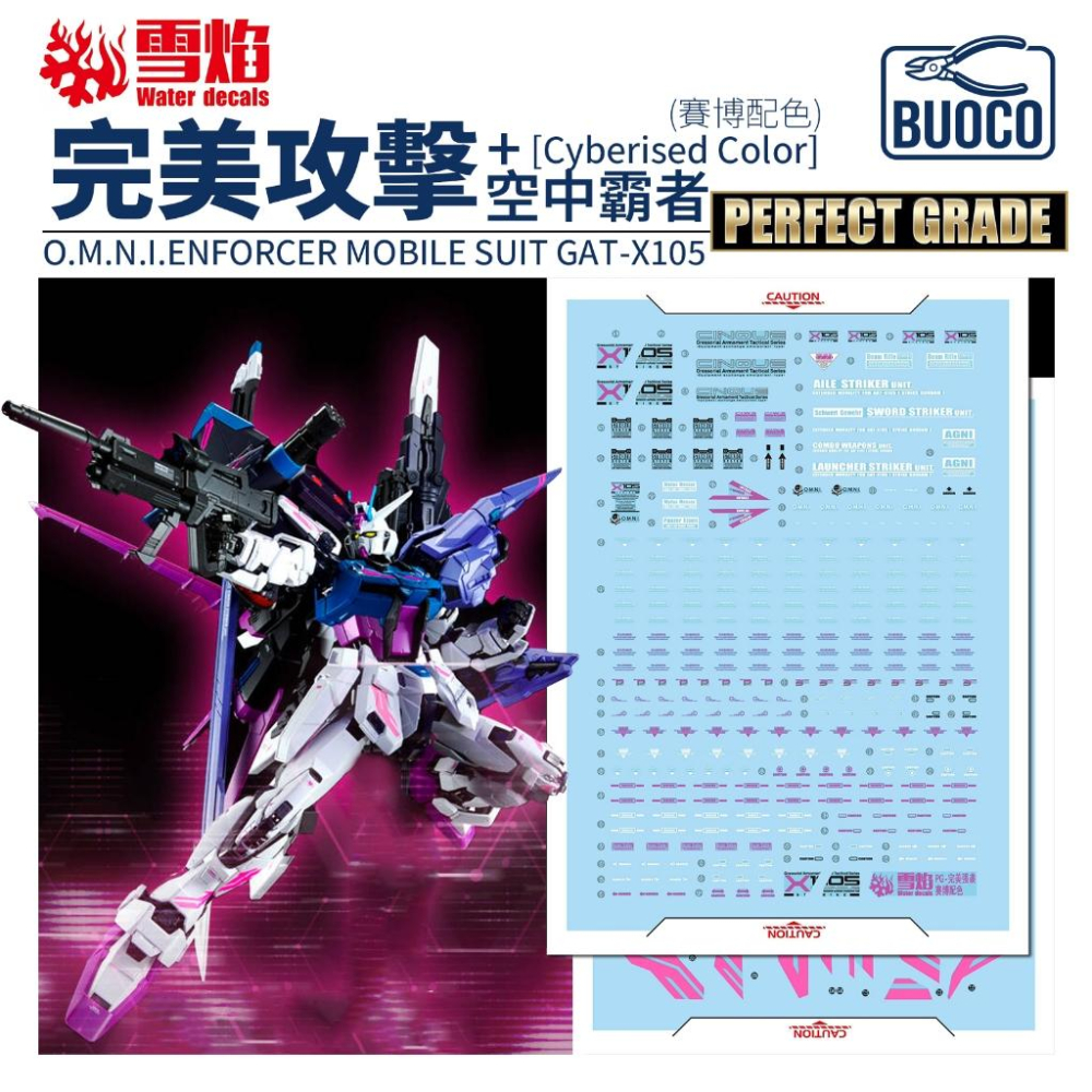 [BUOCO] 雪焰 PG-15 1/60 完美攻擊鋼彈 空中霸者 賽博配色 中國限定 Cyberised 螢光 水貼