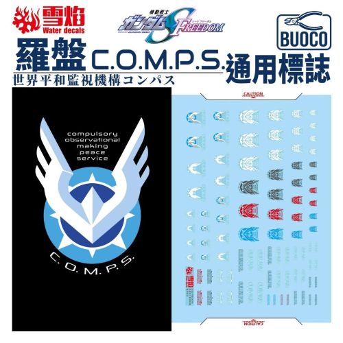 BUOCO, 雪焰, SEEDFreedom, COMPASS, 羅盤, 世界和平監視機構, RisingFreedom, ImmortalJustice, LacusClyne, 拉克絲, 振揚自由, 不朽正義, 通用水貼, 螢光水貼, 鋼彈, 模型