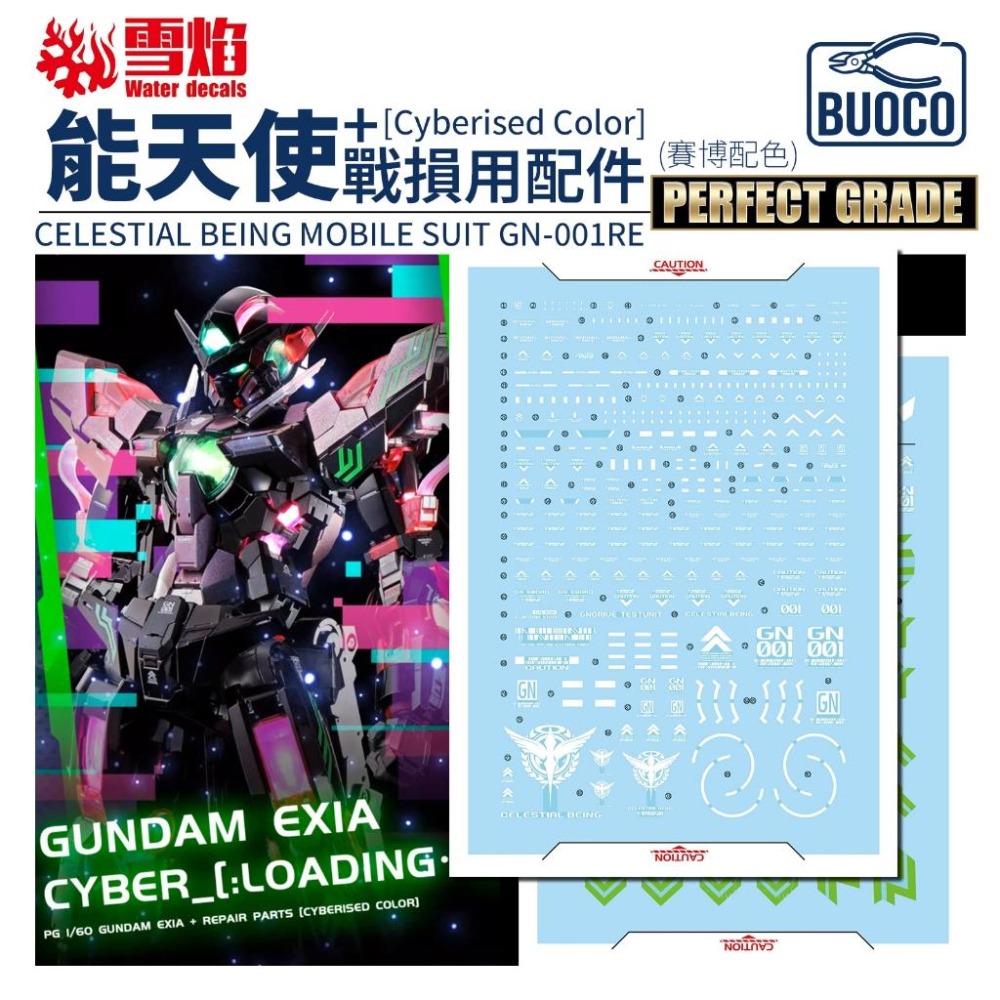 BUOCO, 雪焰, Exia, 能天使, GundamExia, Repair, 戰損版, R1, Setsuna, 剎那, Cyberised, Cyber, 賽博配色, 賽博朋克, 中國限定, 霓虹綠, 螢光水貼, 鋼彈, 模型