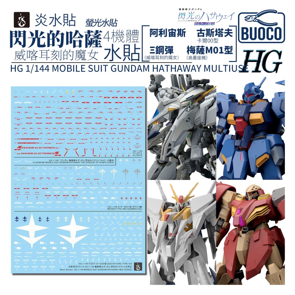 [BUOCO] 炎水貼 HG 1/144 閃光的哈薩威 喀耳刻的魔女 通用 螢光 水貼 柯西 梅薩 阿利宙斯 古斯塔夫