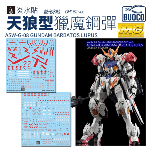 [BUOCO] 炎水貼 GHOST MG 1/100 天狼型獵魔鋼彈 Barbatos Lupus 鐵華團 螢光 水貼