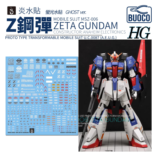 [BUOCO] 炎水貼 HG GHOST 1/144 Z鋼彈 Zeta Gundam MSZ-006 幽谷 螢光 水貼