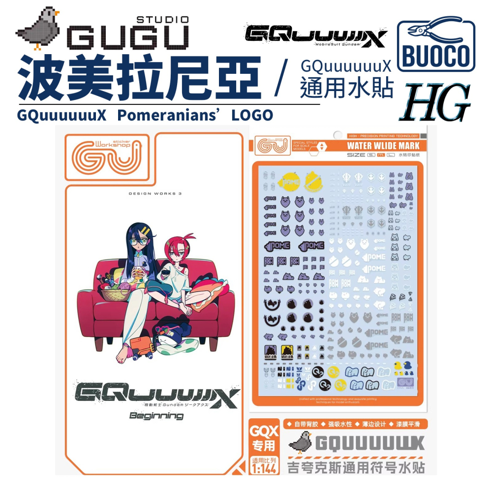 BUOCO, 咕廠長, GUGU, 波美拉尼亞, Pomeranian, 夸克斯, GQuuuuuuX, GQ, 傑奇, 加涅邦, 博美犬, 吉翁, Zeon, 通用水貼, 吉祥物水貼, HG, 模型工具, 水貼, 模型改裝
