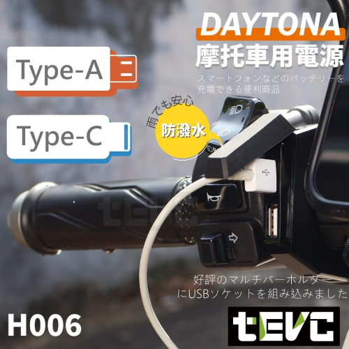 《tevc》DAYTONA USB充電座 雙USB孔 安心 保固 摩托車 把手 超薄 機車 充電座 雙孔 車充 充電