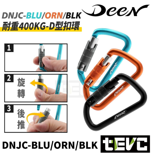 《tevc》DEEN J 耐重400KG 旋轉上鎖 安全扣環 D型扣環 黑 藍 橘三色 DNJC