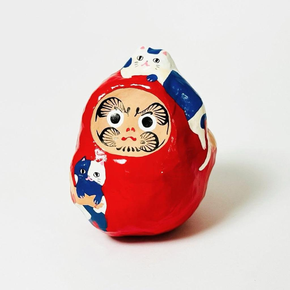 ヤチコダルマ|𝗬𝗔𝗖𝗛𝗜𝗞𝗢 𝗗𝗔𝗥𝗨𝗠𝗔 猫かつぎ達磨 だるま 縁起物 貓咪達磨 白藍色貓咪(大)達摩 不倒翁 緣起物