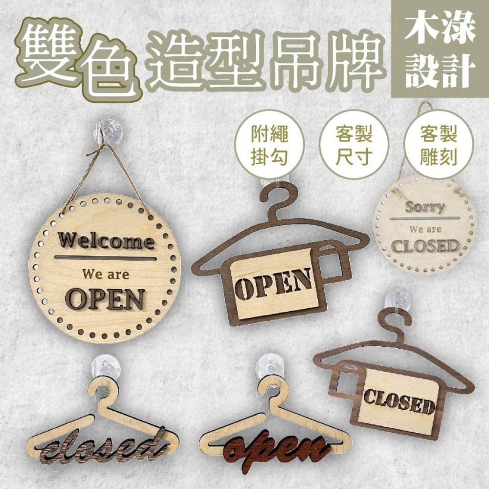 木淥雷射雕刻•木質雙色造型吊牌|營業休息告示牌 客製木製吊牌