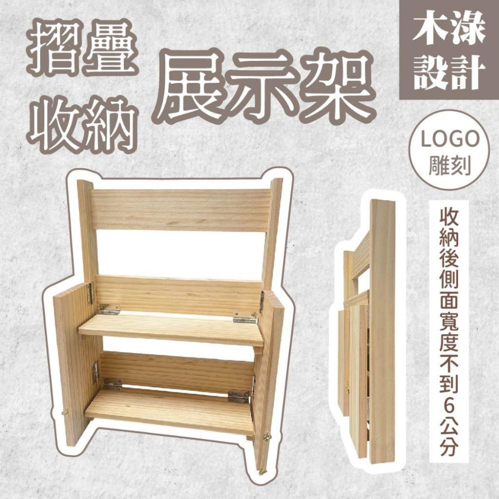 【木淥雷射雕刻•摺疊雙層木製收納展示架】