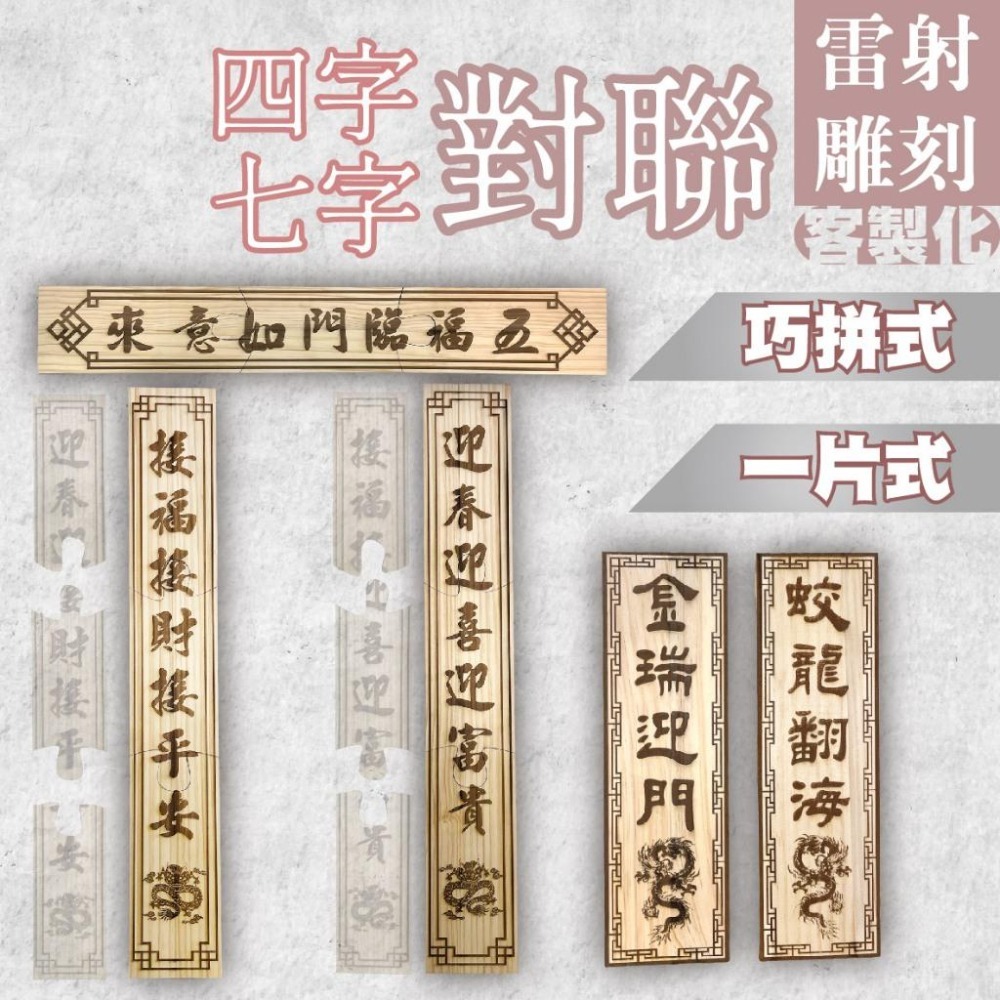 材質:AA級松木直拼板 9mm Q:巧拼式門聯是什麼呢? A:超過45公分無法超商寄運,為了可以服務到所有客群,我們開發了拼圖式的門聯,每一塊拼圖長度為25公分,讓想要擁有客製化的客人也可以輕鬆布置此款木製門聯。