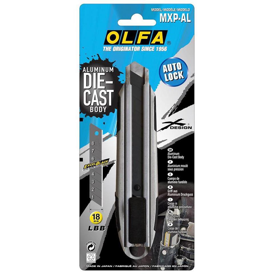 地表最強的美工刀:MXP-AL型壓鑄鋁合金超強握把大型美工刀,最穩固之刀片自動鎖定。 *1.刀柄材質採超強韌壓鑄鋁合金 2.握端具安全掛環設計 3.最新旗艦絕美X系列防滑手柄 4.OLFA獨家開發最穩固之刀片滑板式自動鎖固 5.刀片渠道採強化不銹鋼材質 *商品本身配置LBB超銳利黑刃