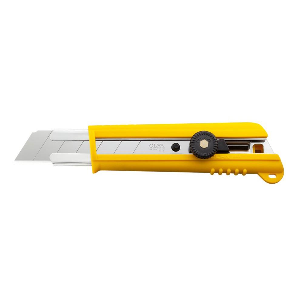 特殊抗滑材質握把特大型美工刀,握感超舒適。 ◆ 用途:切割紙張、合板等重型作業。 ◆ 材質:ABS、SK-2鋼材、彈性體(抗滑設計)。 ◆ 替換刀片為HWSB-1(鋸片)、HB-5B、HBB-5B。