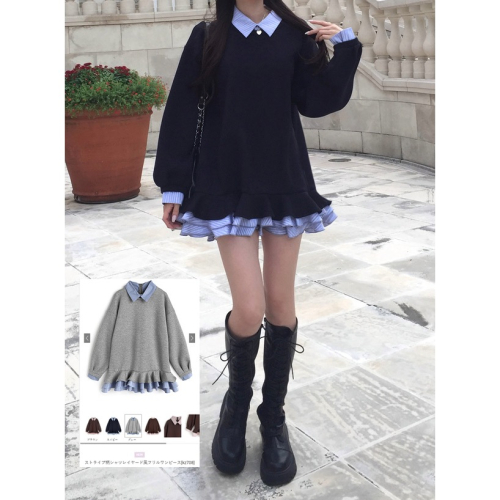 Anita Japan代購 🌸 日本 GRL 甜美 學院風 條紋襯衫 層次風 荷葉邊連身裙 長袖 kz708