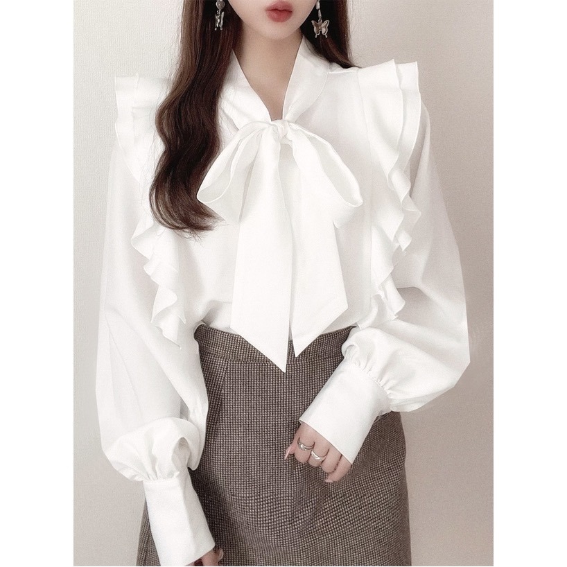 Anita Japan代購 🌸 日本GRL 蝴蝶結褶邊襯衫 長袖襯衫 氣質寬袖 領結 襯衫 長袖 kz404