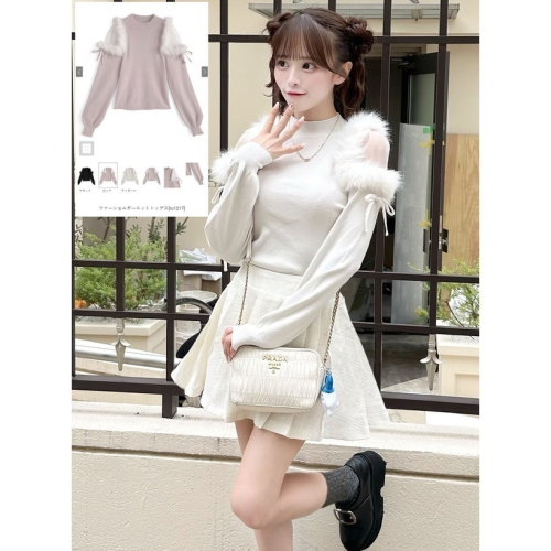 Anita Japan代購 🌸 日本 GRL 甜美氣質 毛茸茸針織上衣 透感肩部 歐根紗 微高領 針織 長袖 ru1217
