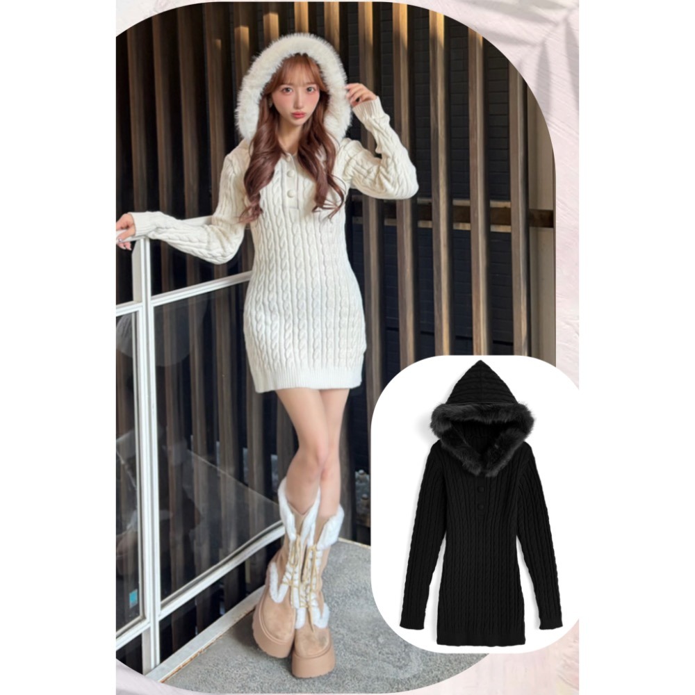 Anita Japan代購 🌸 日本 GRL 毛絨絨 連帽編織針織連身裙 短洋 洋裝 針織 編織 長袖 an1704