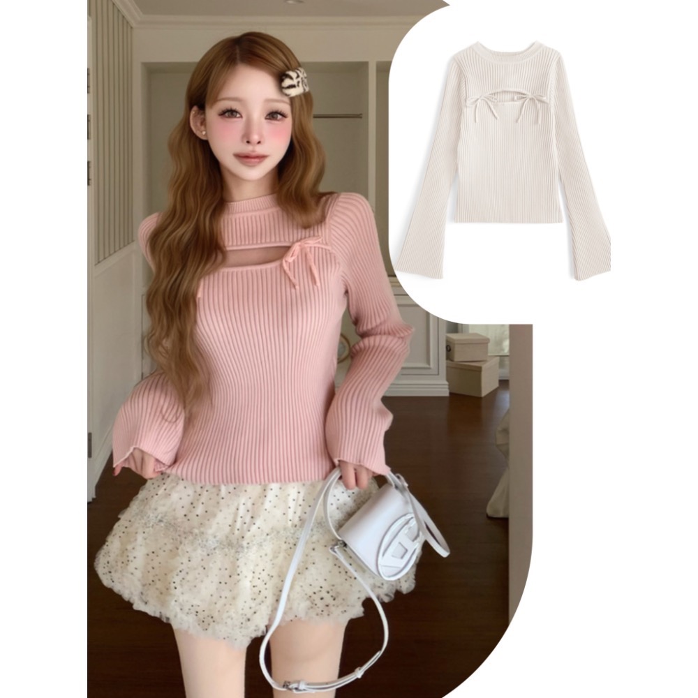 Anita Japan代購 🌸 日本 GRL 百搭羅紋 可愛蝴蝶結 喇叭袖針織上衣 針織 長袖 ru1562