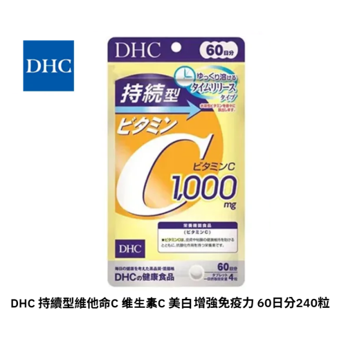 DHC維他命C持續型富含每日所需的維他命C,具優越抗氧化力,能維持健康。緩慢溶解的持續型,能守護青春美麗與年輕活力。