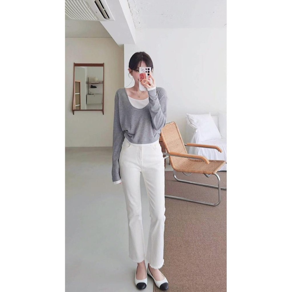 中高腰版型合身小直筒剪裁,顯瘦長腿,一樣是超百搭🫶🫶 褲腳非常微微靴型,褲口不修邊設計, 布料是四季款一般厚度,3%彈力超舒適,褲型久穿也不變形👌👍