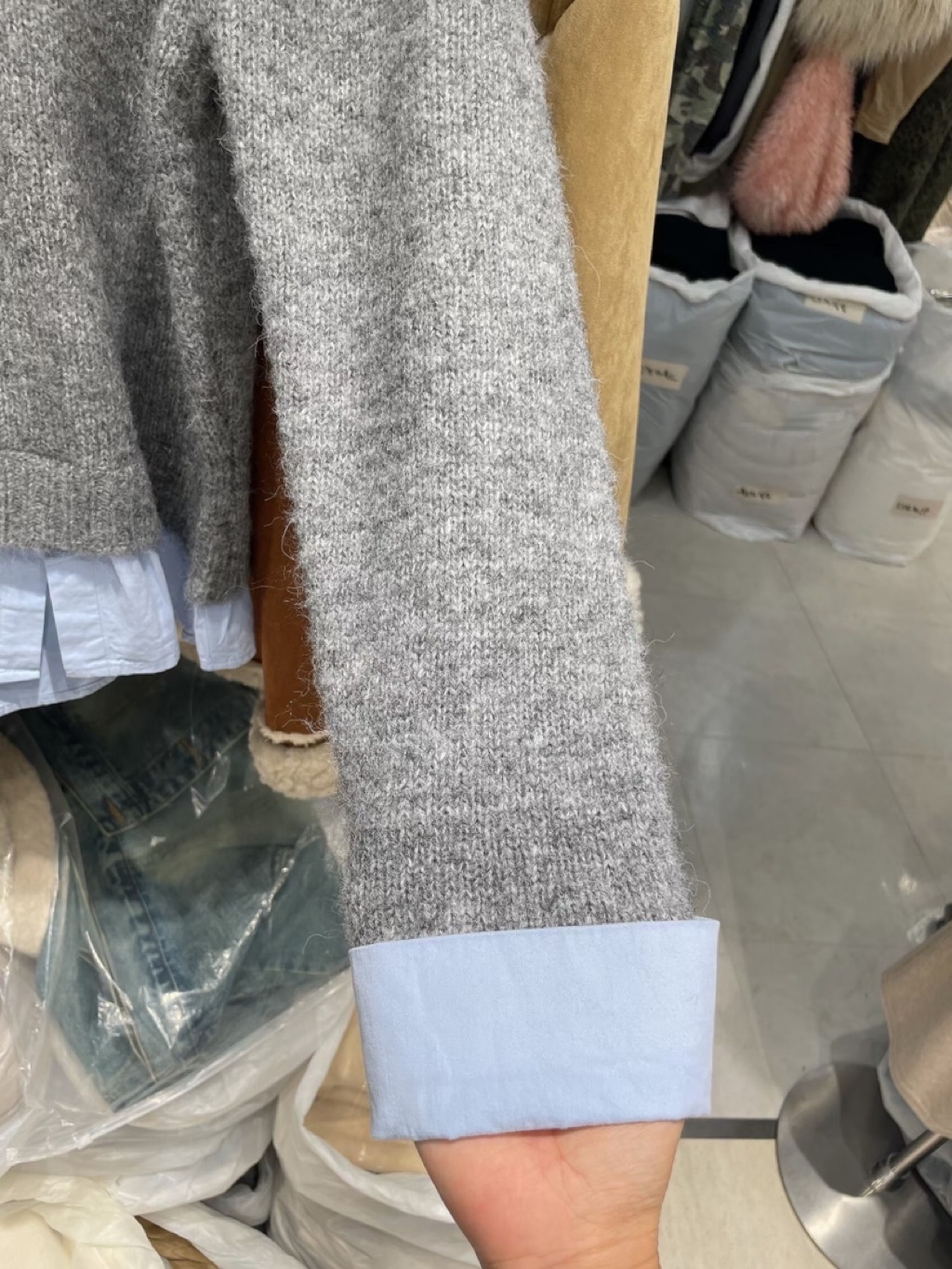 露出的下擺跟袖口長度剛剛好,隨意拍都是韓系小姐姐。