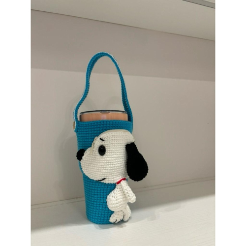 JoJo愛編織 編織飲料提袋 冰霸杯提袋★史努比★ 毛線編織 冰壩杯套 杯袋 保溫杯套 冰霸杯套 環保飲料提袋