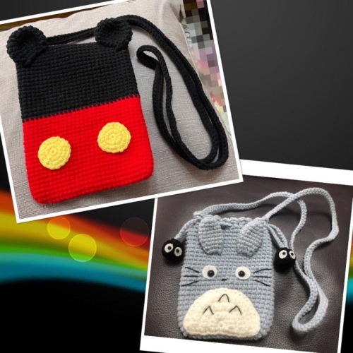 毛線編織 兒童束口包 龍貓多用途小包 米奇背袋 手作萬用包 束口袋 兒童斜包