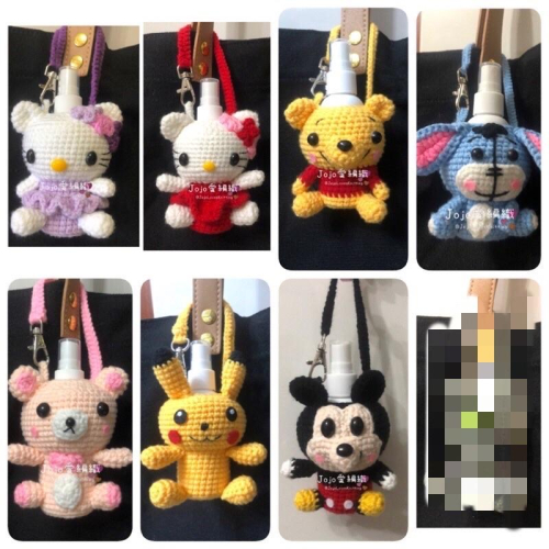 毛線編織 屹耳 維尼 米奇 KITTY酒精瓶袋(含60ml酒精空瓶) 防疫酒精瓶袋掛袋 酒精瓶套 手作酒精瓶袋