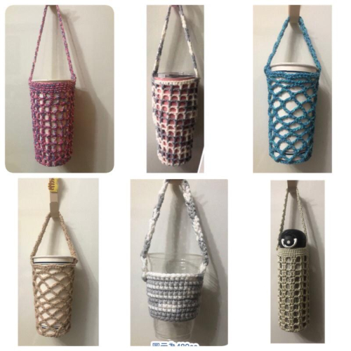 <出清特價>編織飲料提袋★★純手工 毛線編織 保飲料提袋 環保杯套 杯袋 水壺提袋 手搖飲提袋 編織杯套 編織提袋