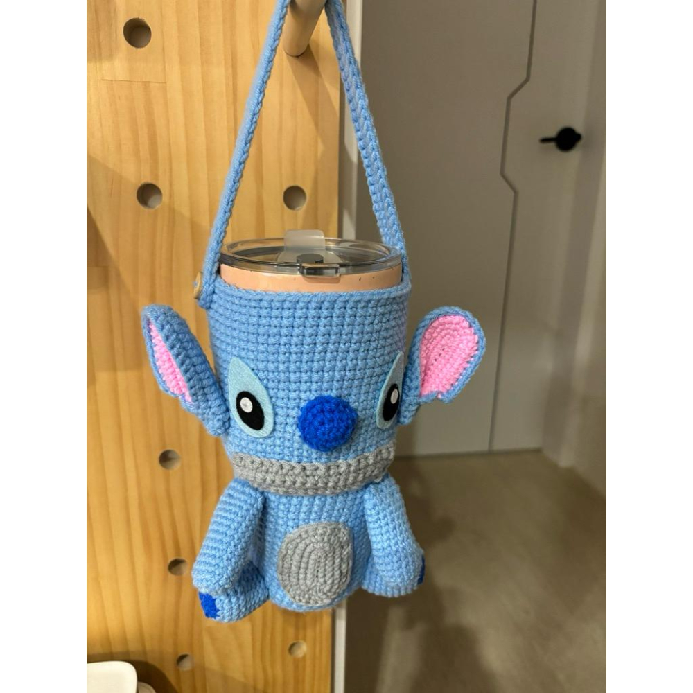 編織飲料提袋 冰霸杯提袋★史迪奇★純手工 毛線編織 冰壩杯套 杯袋 保溫杯套 冰霸杯套 環保飲料提袋