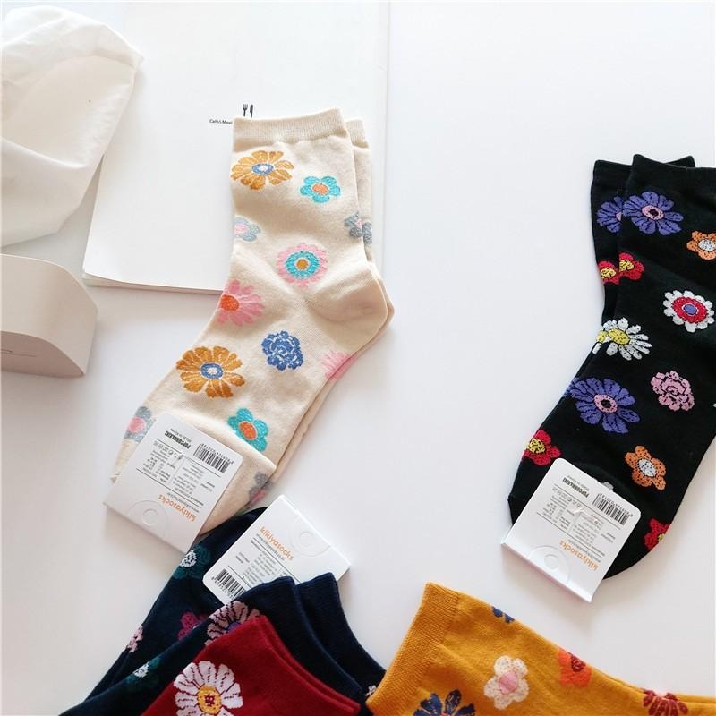 正韓🇰🇷 復古彩色花朵中筒襪 kikiyasocks棉襪 *5色 | kukuta
