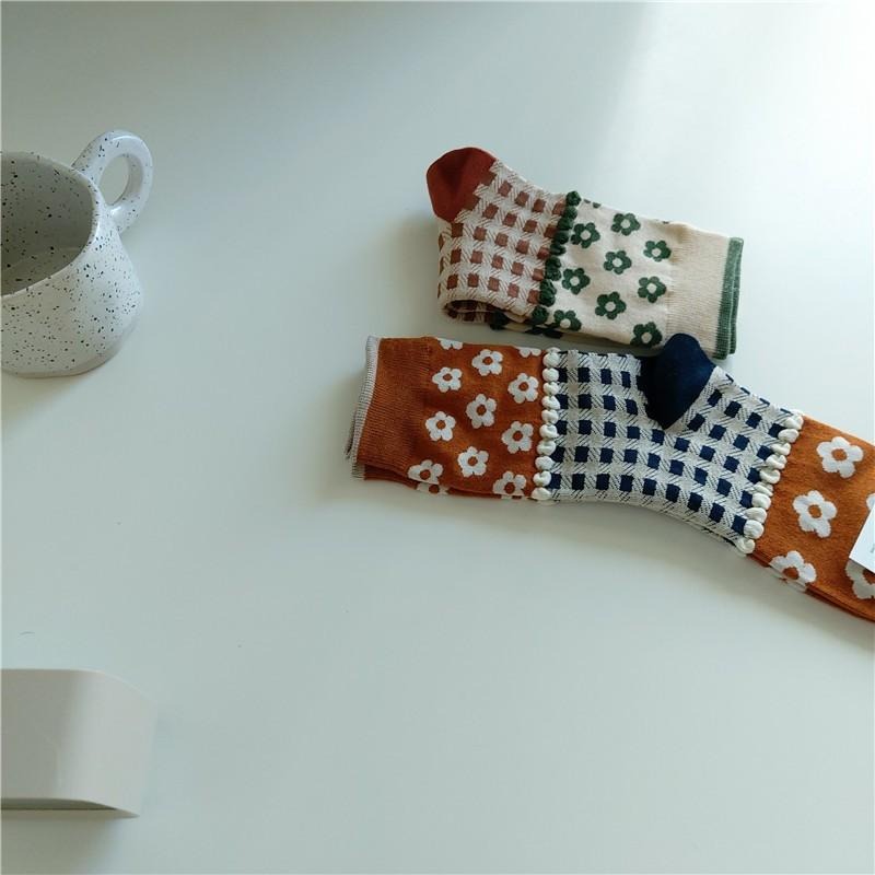 現+預 正韓🇰🇷 立體拼色花朵中筒襪 kikiyasocks棉襪 *4色 | kukuta