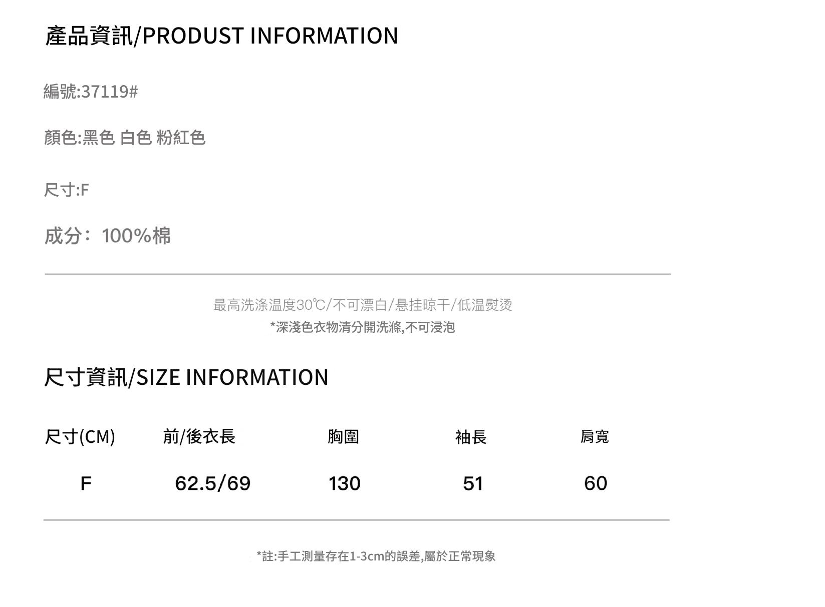 👕 商品尺寸與色差提醒