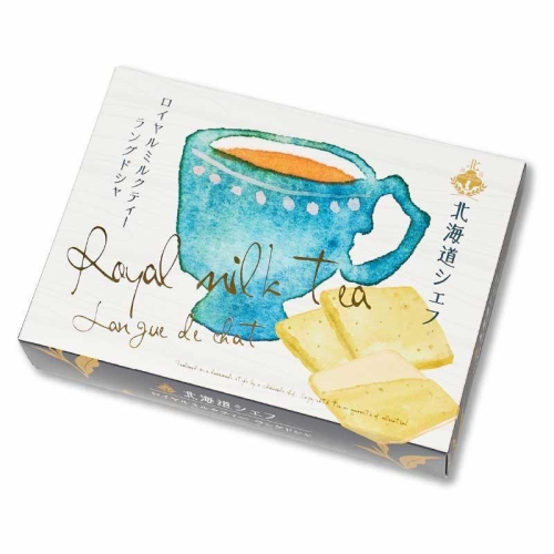 北海道必買~現貨到 北海道奶茶曲奇餅 香噴噴的伯爵灰貓舌。在牛奶中加入伯爵茶製成的薄巧克力中夾著一塊用茶葉揉成的餅乾。伴隨著曲奇的酥脆口感和巧克力在口中的融化,紅茶的香氣在口中蔓延開來。 產品名稱:北海道廚師皇家奶茶曲奇餅