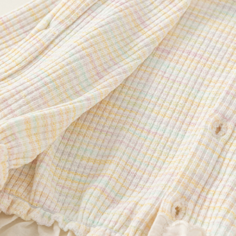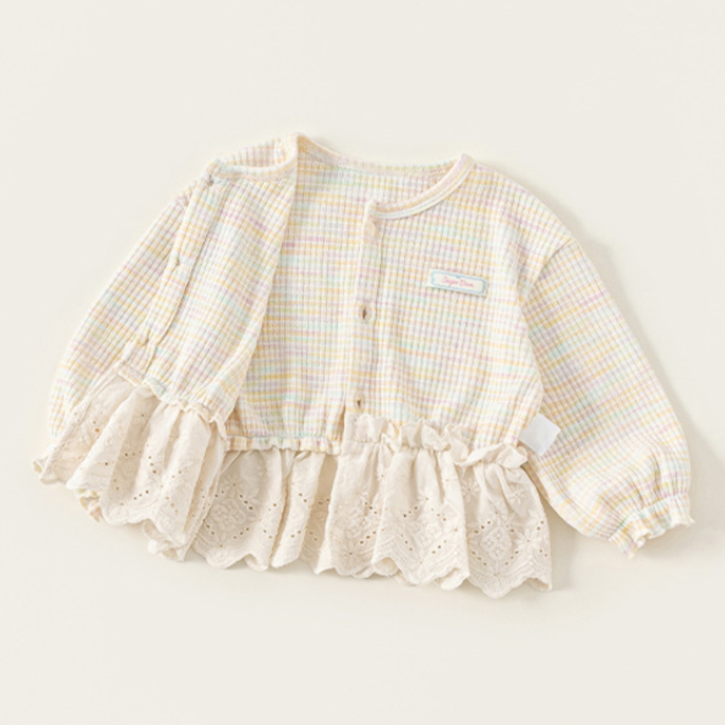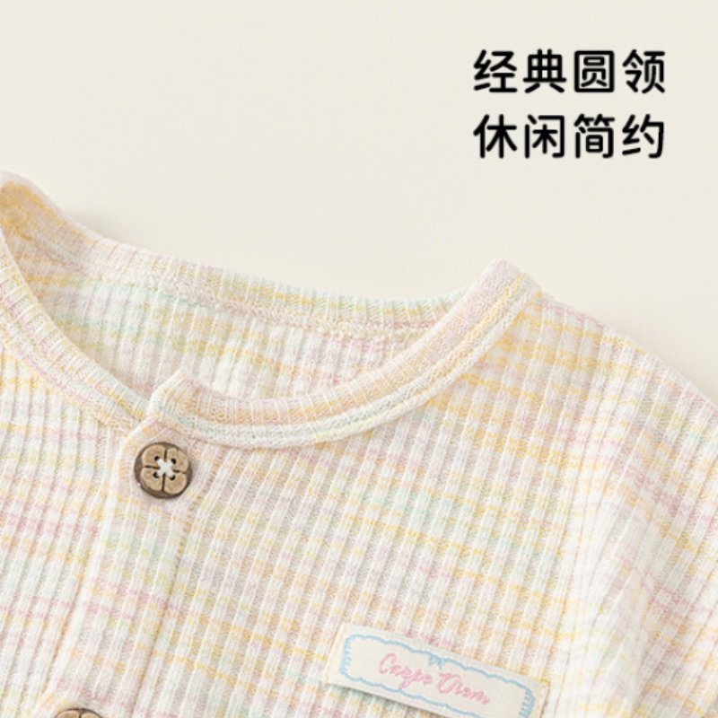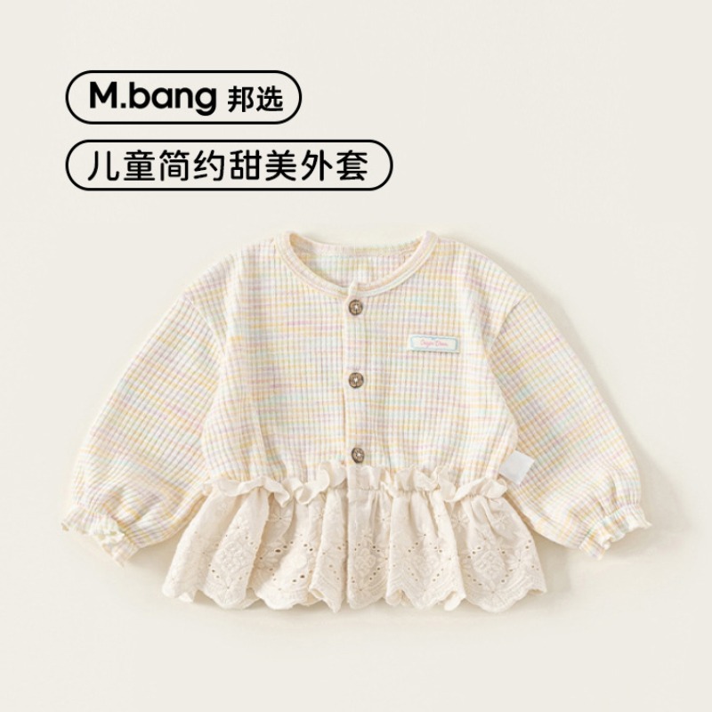 這款 春季新款彩色條紋花邊開衫外套,以柔和多彩的條紋設計,搭配細緻花邊收邊,清新又甜美,輕鬆打造女寶寶的春日穿搭亮點。