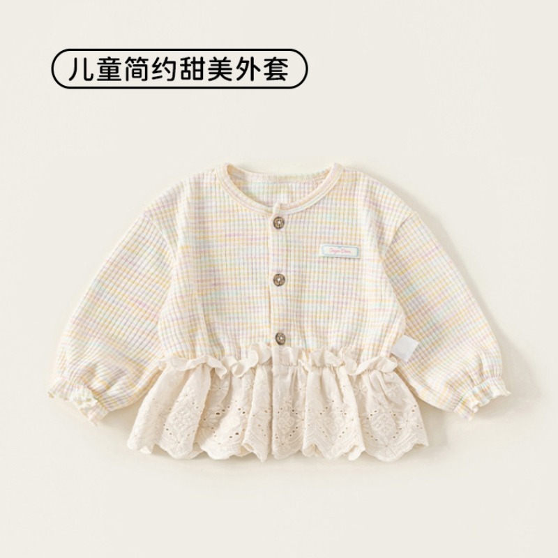 春季新款彩色條紋花邊開衫外套,以柔和多彩的條紋設計,搭配細緻花邊收邊,清新又甜美,輕鬆打造女寶寶的春日穿搭亮點。