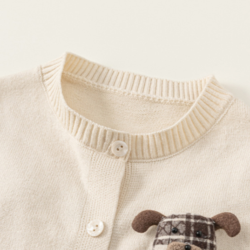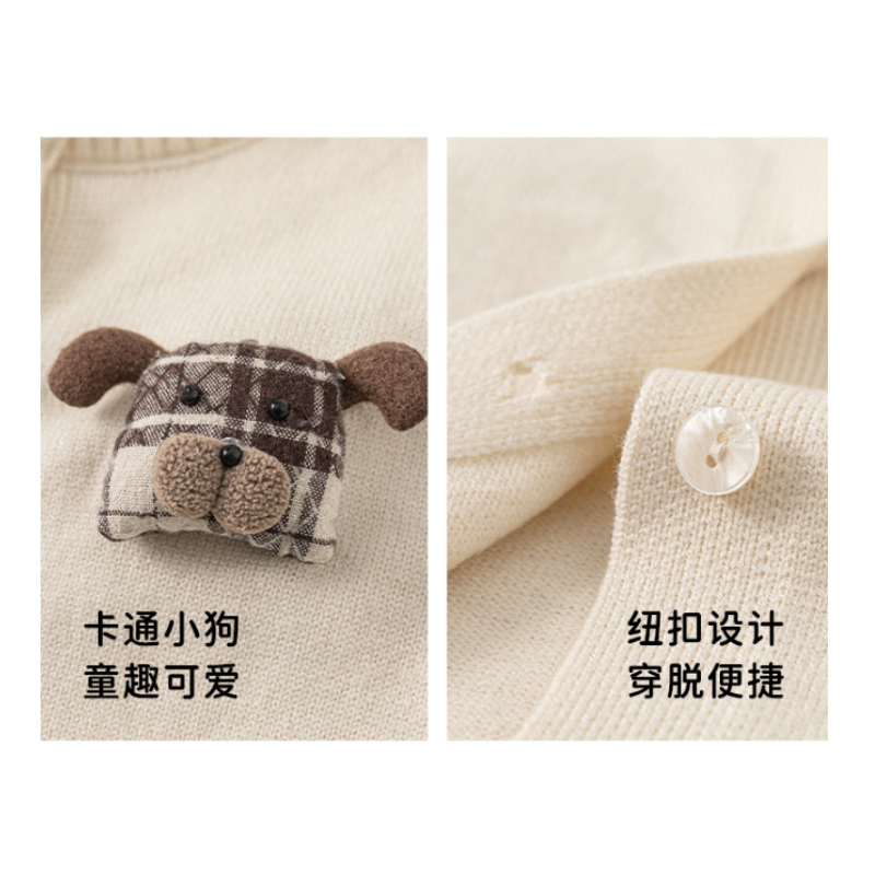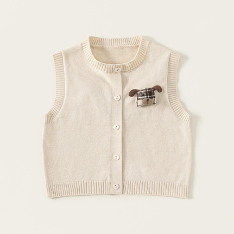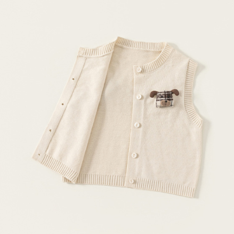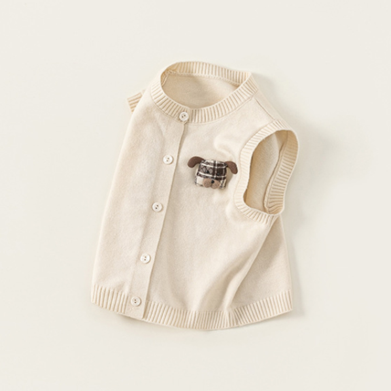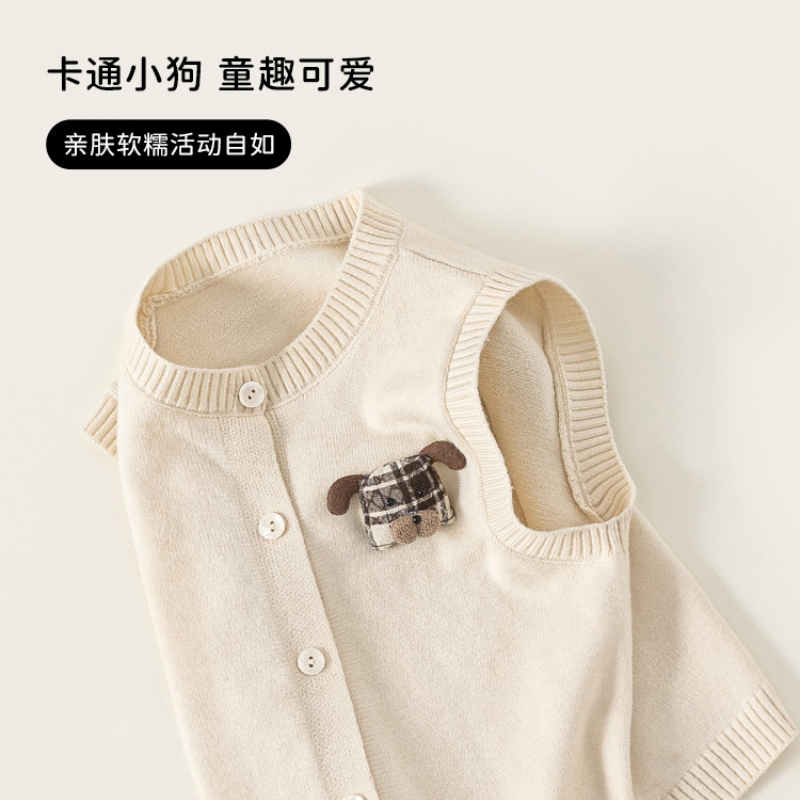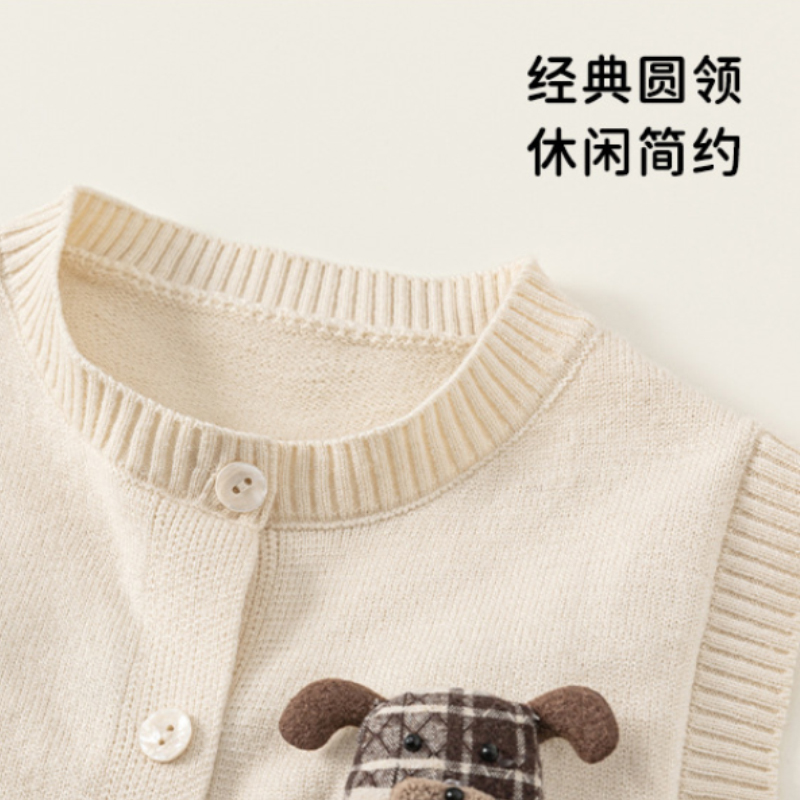 這款 春款小狗圖案針織開衫背心,以童趣滿滿的小狗元素作為亮點,溫柔可愛又不失質感,男女寶寶都能輕鬆駕馭,是春季穿搭的萬用單品。