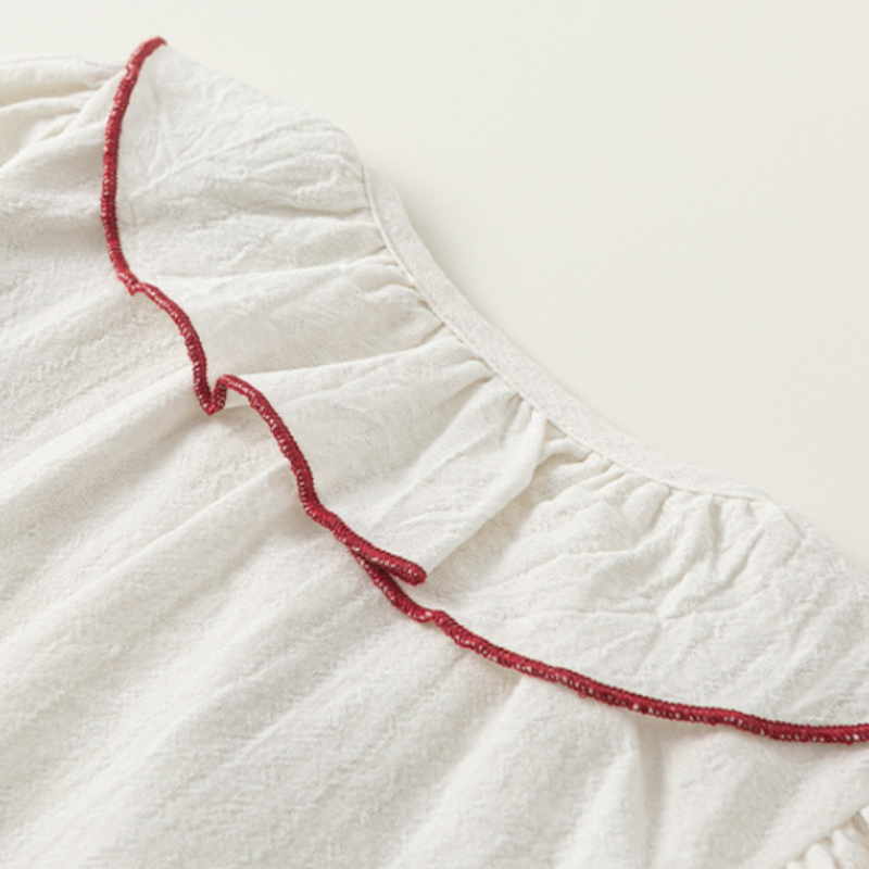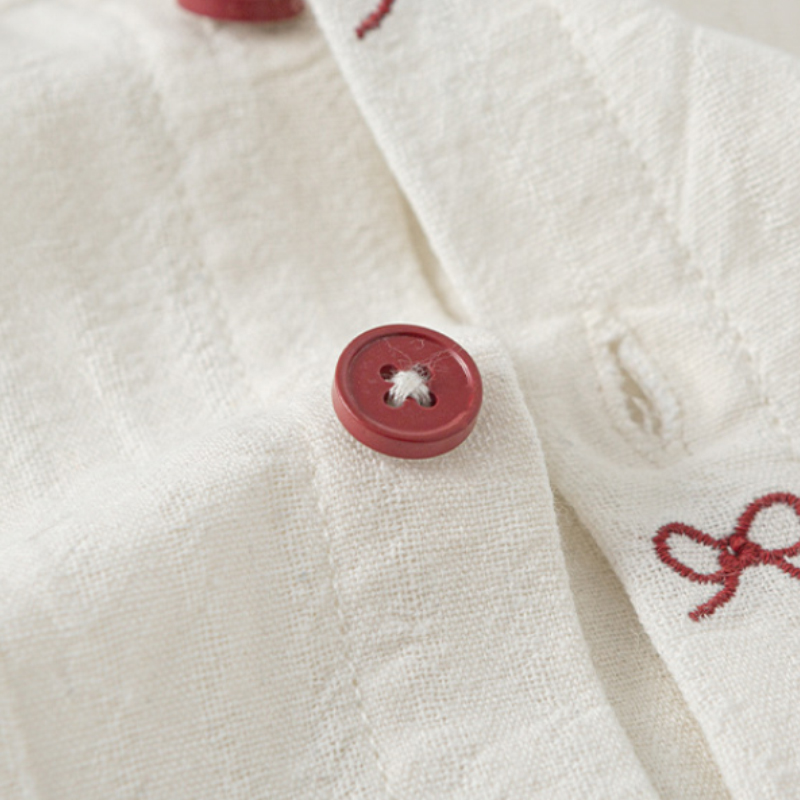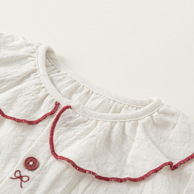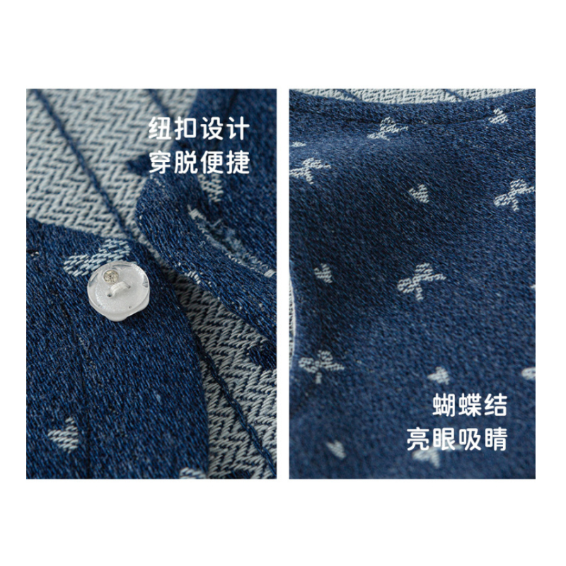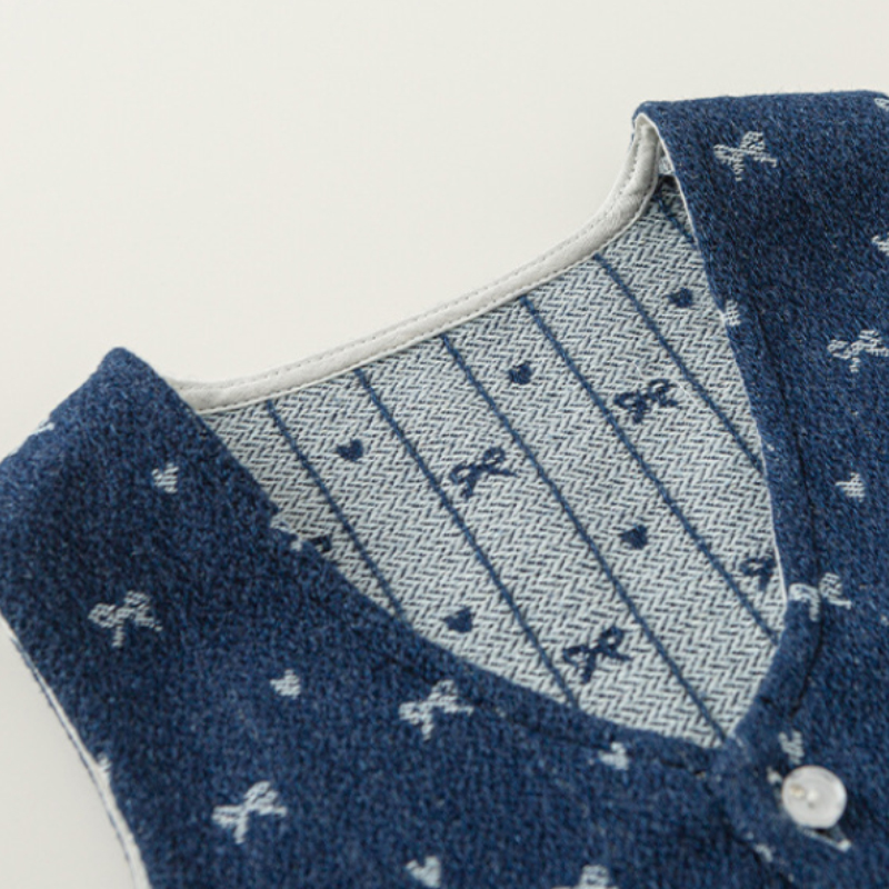 娃娃衫版型甜美可愛,牛仔馬甲增添造型感,而闊腿褲的蝴蝶結細節更是整套亮點。三件單品可分開搭配日常服裝,一套多穿,實穿度與造型感兼具,非常適合外出、聚會或拍照穿搭。