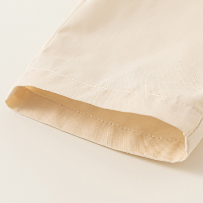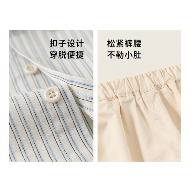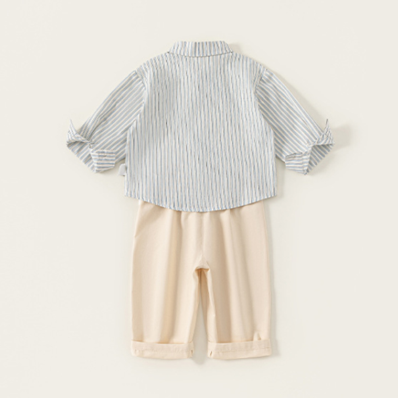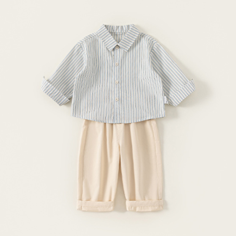 整套採用 100%純棉面料,柔軟親膚、透氣不悶,適合春季與換季穿著。襯衫版型舒適不貼身,活動時不卡卡;褲款腰頭彈性設計,穿脫方便、不勒肚肚,寶寶跑跳坐下都自在。