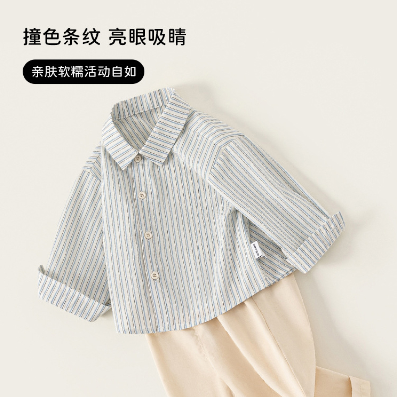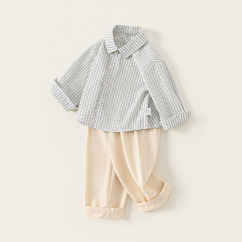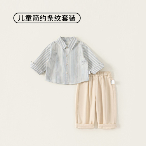 這款 童裝春季新款男寶寶條紋襯衫休閒褲兩件套,以清爽條紋襯衫搭配休閒褲剪裁,打造小紳士休閒風格,不用再煩惱搭配,直接穿就好看。