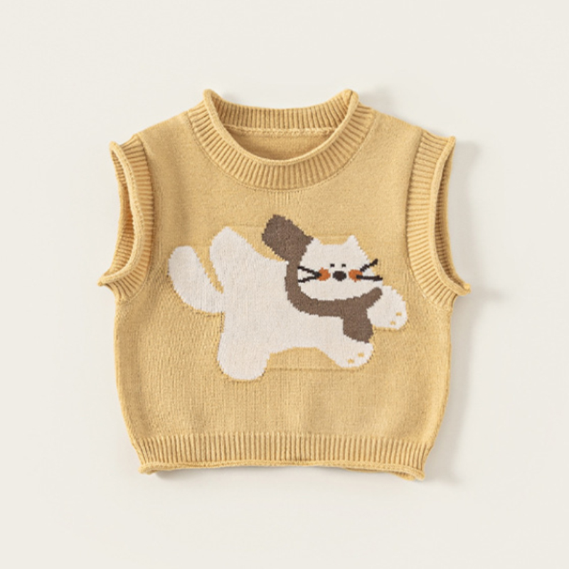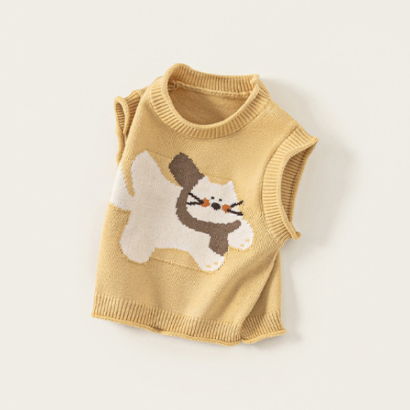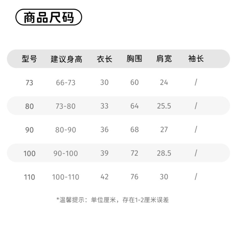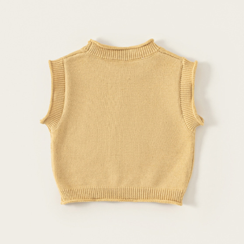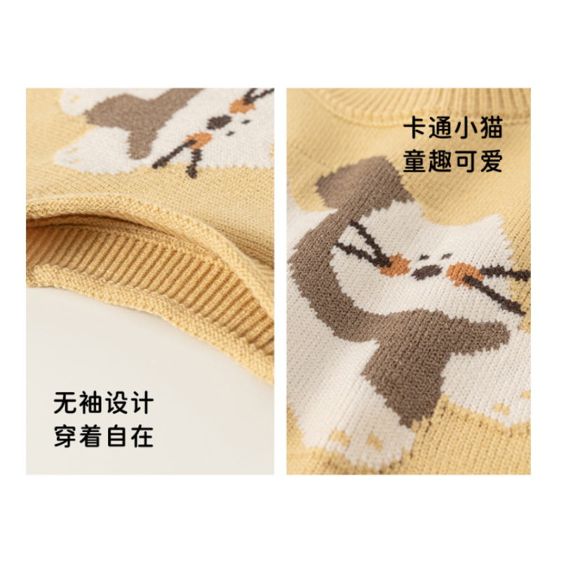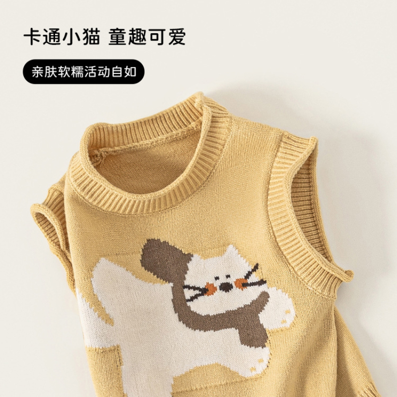 面料採用 50%壓克力纖維+28%聚酯纖維+22%尼龍,手感柔軟、輕盈保暖、不易起皺變形,適合春季與換季穿著。無袖設計不影響活動,寶寶跑跳、彎腰、玩耍都自在。